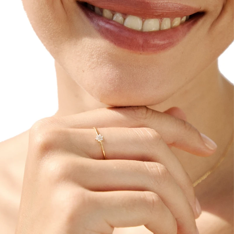 Anel feminino em ouro amarelo de 18k da coleção Little Flower, um modelo elegante e moderno, com diamantes de 0.042ct cravados no topo, que formam uma flor. Uma peça de joalharia de design minimalista, fantástica para a looks de verão. Todos os produtos da marca LeCarré Jewels são peças de joalharia certificadas, com as respetivas Marcas da Contrastaria, de acordo com a legislação em vigor, acompanhadas do certificado de autenticidade. Joia feita à medida. O prazo para entrega pode pontualmente ser alargado devido a rotura de stock no fabricante e o prazo será de 30 dias.