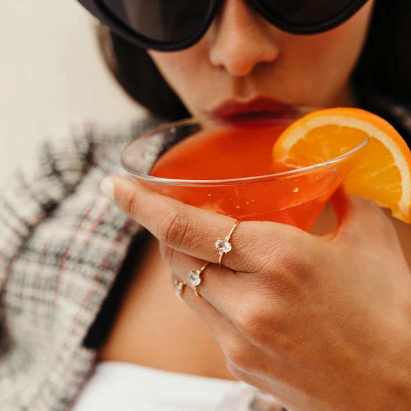 Anel feminino em ouro amarelo de 18k da coleção Must, com destaque no Topázio branco cravado no centro e dois diamantes nas laterais de 0.03ct. Uma peça de joalharia de elevada qualidade, de design moderno e elegante, com diamantes e topázio colocados com precisão e mestria joalheira. Vai ser a peça que irá poder usar com as outras peças da mesma coleção, sendo que também é a ideal para os looks de verão. Todos os produtos da marca LeCarré Jewels são peças de joalharia certificadas, com as respetivas Marcas da Contrastaria, de acordo com a legislação em vigor, acompanhadas do certificado de autenticidade. Joia feita à medida. O prazo para entrega pode pontualmente ser