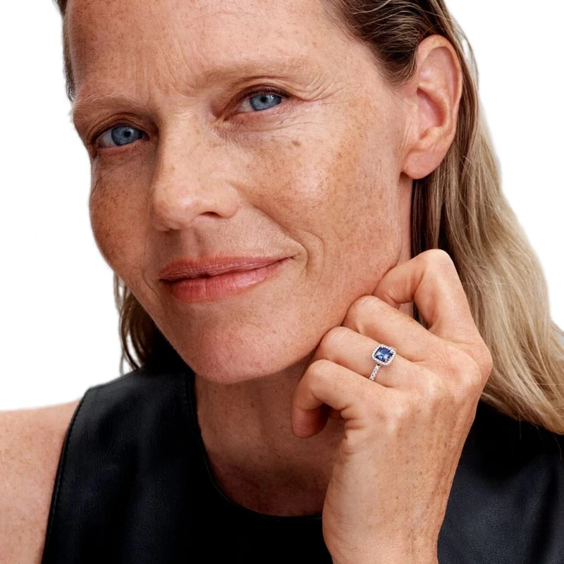 Evoque um presença subtil e envolvente com o anel Pandora Timeless, uma joia de brilho apaixonante elaborada em prata de lei 925 com uma composição de zircónias cravadas sobre a base prateada. Com destaque no halo da peça, uma gema quadrangular de cor vibrante e profunda em azul provoca uma atenção hipnotizante e calma com um toque de charme complementado pela envolvência das pedras transparentes ao seu redor. Uma adição visual estética que carrega um apontamento luminoso e leve combinado a uma elegância moderna e arrojada.