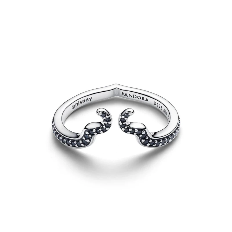 Crie um look marcante com este anel feminino Pandora em prata de lei 925, uma joia inspirada na icónica vilã do universo Disney Maléfica, uma personagem antagonista presente no filme de animação da Walt Disney "A Bela Adormecida" de 1959. De coloração prateada, este modelo apresenta um design misterioso com o cravar de zircónias pretas sobre o aro aberto que cria a aparência dos chifres sobre a cabeça. Uma joia que desperta um fascínio pela magia e ambiente do mundo fantástico da Disney, envolvendo-se de modo contrastante e brilhante com o visual de uma mulher.