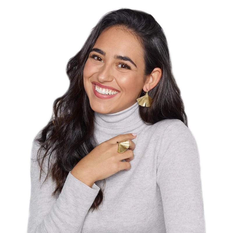 Anel feminino em prata de lei 925 de coloração dourada da Sara Sousa Pinto com destaque numa representação de simplicidade e elegância. De design minimalista, esta joia faz referência à natureza ao representar uma folha de Ginkgo Biloba, delicadamente pousada sobre o anel. Com as suas linhas sinuosas que conferem uma sensação suave e de movimento, esta peça personifica a folha num retrato realista de forma encantadora, tornando-se numa expressão de refinamento da beleza natural e sofisticação intemporal.