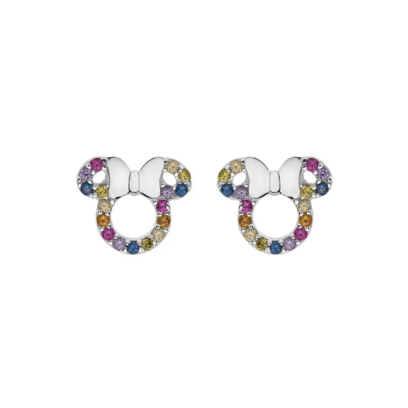 Os brincos da Minnie com pedras coloridas são acessórios delicados e encantadores, perfeitos para quem ama o charme clássico da personagem Disney. Cada peça destaca o icónico formato das orelhas da Minnie, muitas vezes acompanhado do seu famoso laço, agora enriquecido com pedras brilhantes em várias cores. Essas pedrinhas, cuidadosamente aplicadas, criam um efeito vibrante e luminoso.