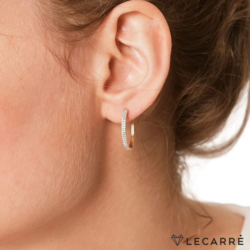 Argolas femininas em ouro amarelo de 18k da coleção Daily Diamonds, de estilo fino e elegante, com uma das faces cravada de diamantes de 0.25ct, colocados com mestria joalheira. Uma peça de joalharia de design moderno e minimalista. Uma joia para looks leves, que pode conjugar com peças da mesma coleção. Todos os produtos da marca LeCarré Jewels são peças de joalharia certificadas, com as respetivas Marcas da Contrastaria, de acordo com a legislação em vigor, acompanhadas do certificado de autenticidade. Joia feita à medida. O prazo para entrega pode pontualmente ser