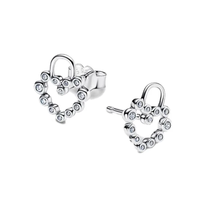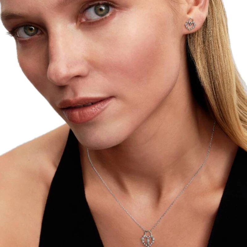 Brincos femininos da Pandora em prata de lei 925, um par de joias trabalhadas com um design em forma de um coração e cadeado, símbolos de referência ao amor e proteção. Adornados com zircónias cúbicas cravadas sobre a forma do amor, recortado no centro, estas peças refletem um brilho delicado com um toque de simbolismo, ideal para realçar o look de forma refinada para uma mulher romântica e apaixonada.