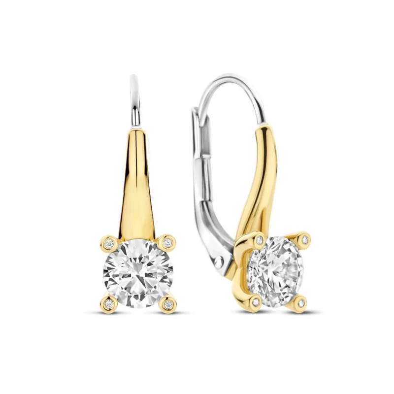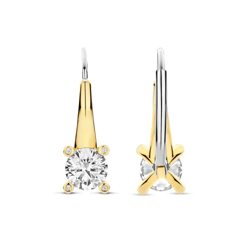 Brilhe com os brincos femininos em prata de lei 925 da Ti Sento Milano, um par de joias bicoloridas com um delicado acabamento de um banho de ouro dourado. Desenhadas sobre forma de argolas, cada joia é complementada com uma zircónia que desperta um brilho revigorante e envolvente ao look de uma mulher que procura criar distinção com um toque refinado.