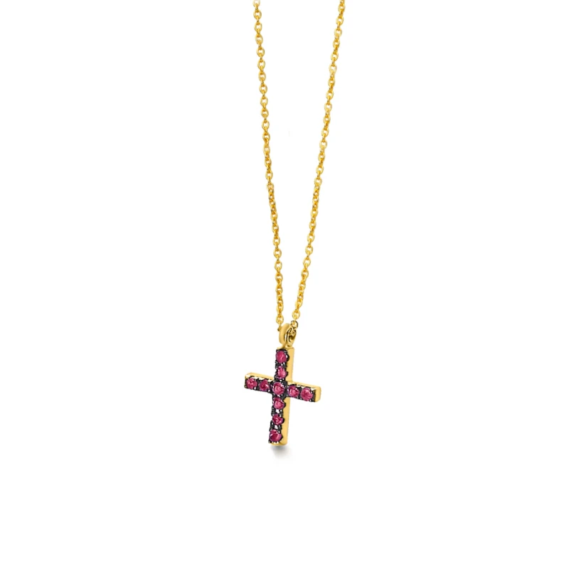 Colar LECARRÉ Cruz Rubis Ouro 18k GD101OA.RU