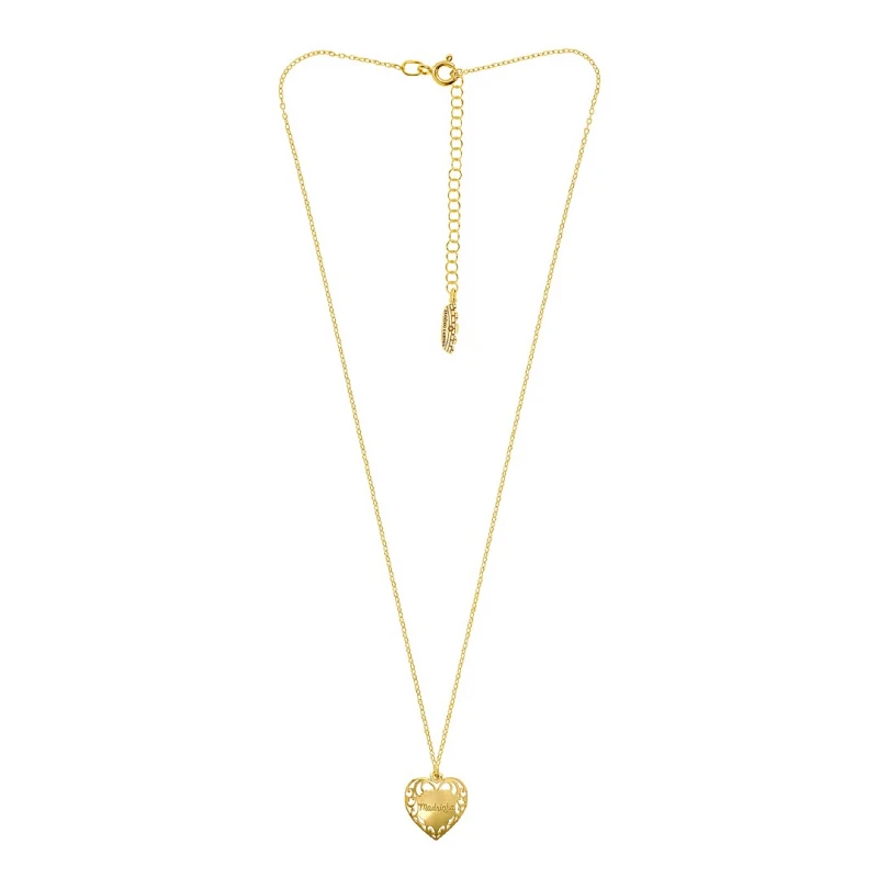 Espalhe um amor simbólico com este belo colar para mulher da Eugénio Campos, elaborado em prata de lei 925 com acabamento de um banho de ouro. Com uma radiante coloração dourada, eta joia de malha fina com tamanho ajustável destaca o seu pendente em forma de coração, habilmente elaborado com detalhes de recortes para um toque refinado, marcando a presença da palavra "madrinha" inscrita no centro. Dedique esta elegante peça à sua madrinha demonstrando um lado de afeto com um toque especial que irá envolver o look de forma deslumbrante e sentimental.