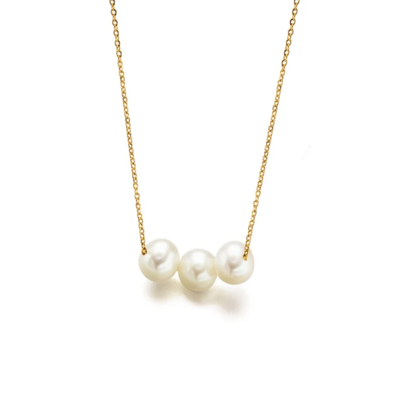 Colar feminino em ouro de 18 quilates com três pérolas de cultivo, uma peça de joalharia em ouro amarelo. O etrelaçar de ouro e pérolas minimalistas, faz desta uma joia elegante e intermporal, para usar em qualquer ocasião. Todos os produtos da marca LeCarré Jewels são peças de joalharia certificadas, com as respetivas Marcas da Contrastaria, de acordo com a legislação em vigor, acompanhadas do certificado de autenticidade. Joia feita à medida. O prazo para entrega pode pontualmente ser alargado devido a rotura de stock no fabricante e o prazo será de 30 dias.