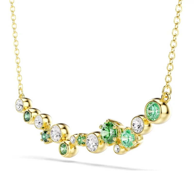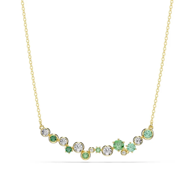 Coloque estilo no seu guarda-roupa com este deslumbrante colar Constella com revestimento em dourado. No centro do design estrelado, encontra cristais Swarovski verdes e incolores em vários tamanhos e tons, cada um apresentado num engaste de garras ou em bisel.