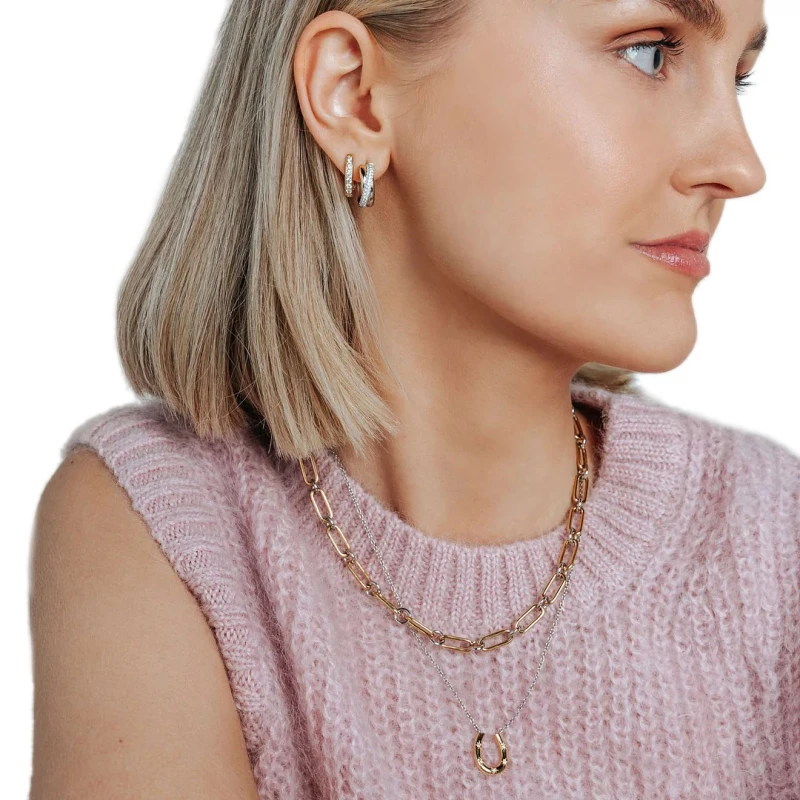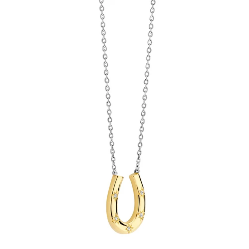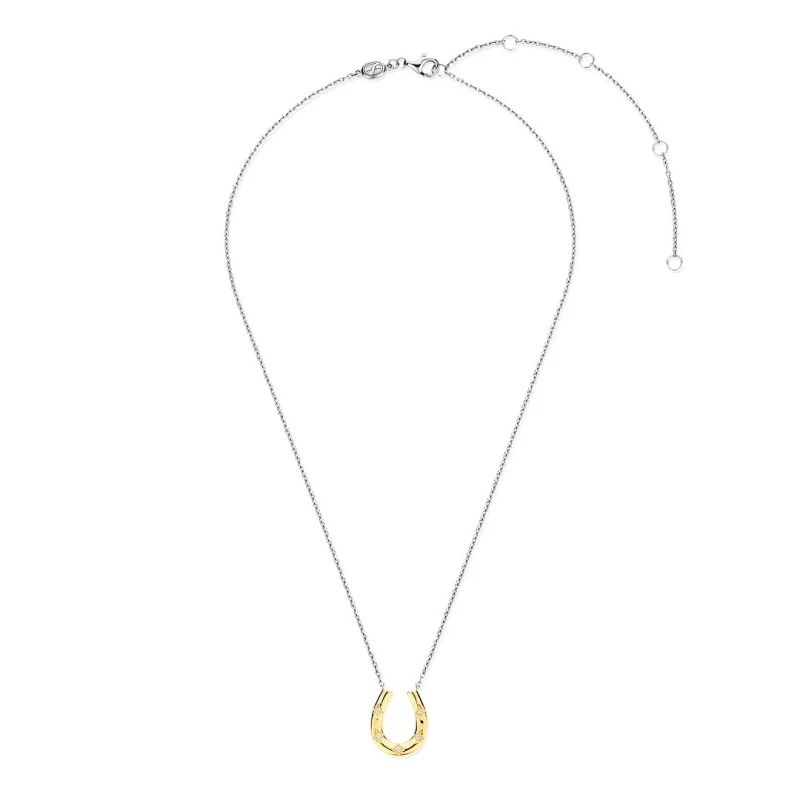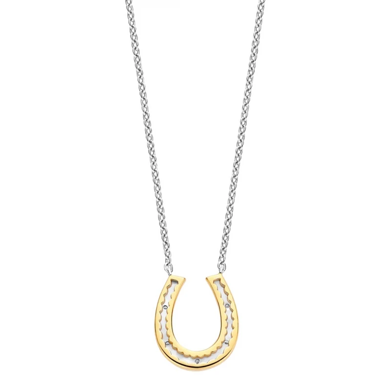 Envolve o seu visual com um toque de boa sorte com este colar de mulher Ti Sento Milano. Trabalhado em prata de lei 925, esta joia destaca o seu pendente em forma de ferradura, um símbolo de sorte, com um radiante acabamento de um banho de ouro dourado com cravação de pequenas zircónias. Um design intemporal que adiciona uma frescura ao look com lado cativante e sofisticado.