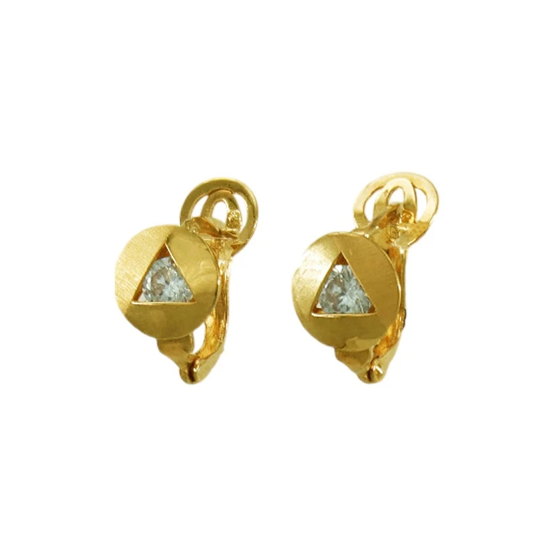 Brincos femininos para criança em ouro de 19.2klts (800). Trabalhadas em formato de argolas, este modelo apresenta um molde circular que envolve, cada joia, uma radiante zircónia despertando um toque de brilho suave e refinado para um look encantador.