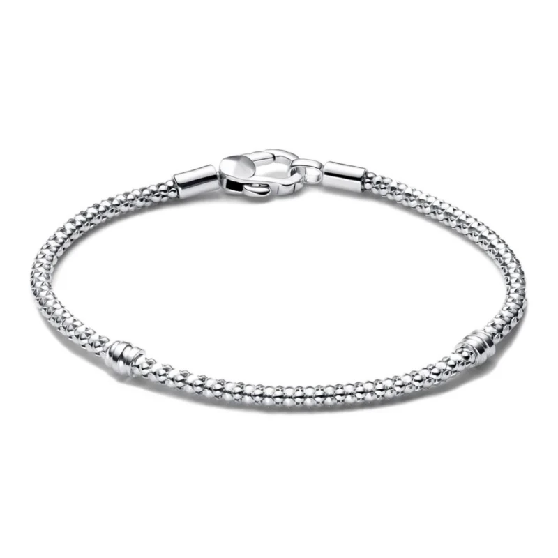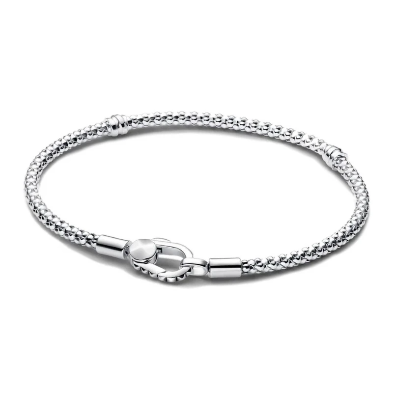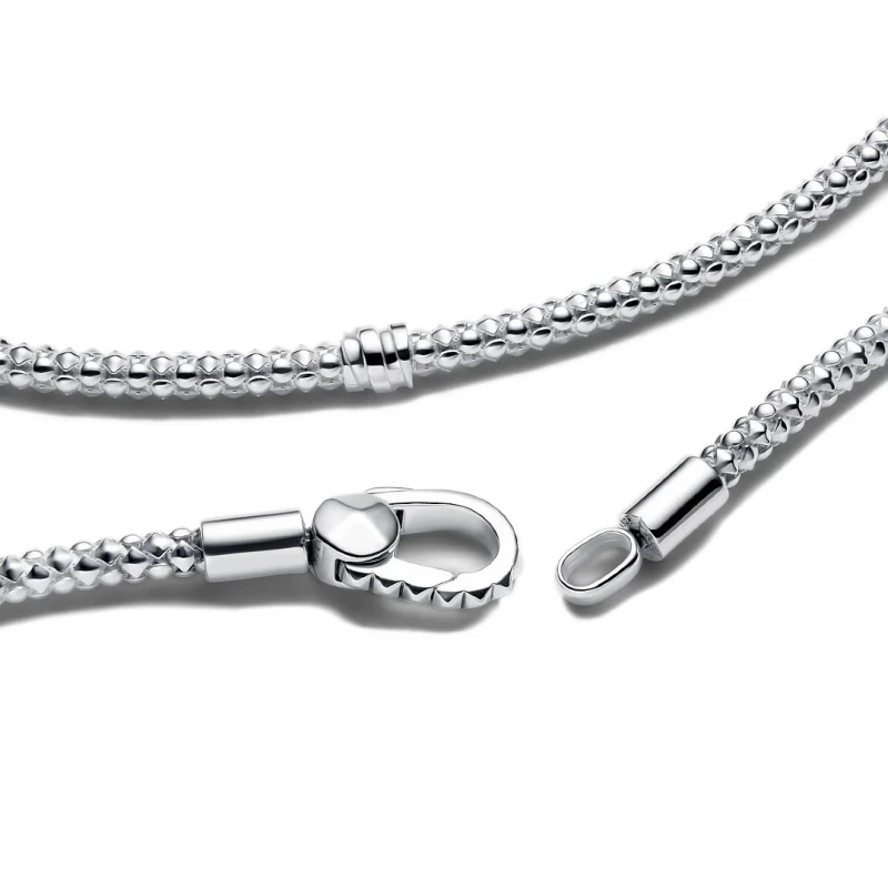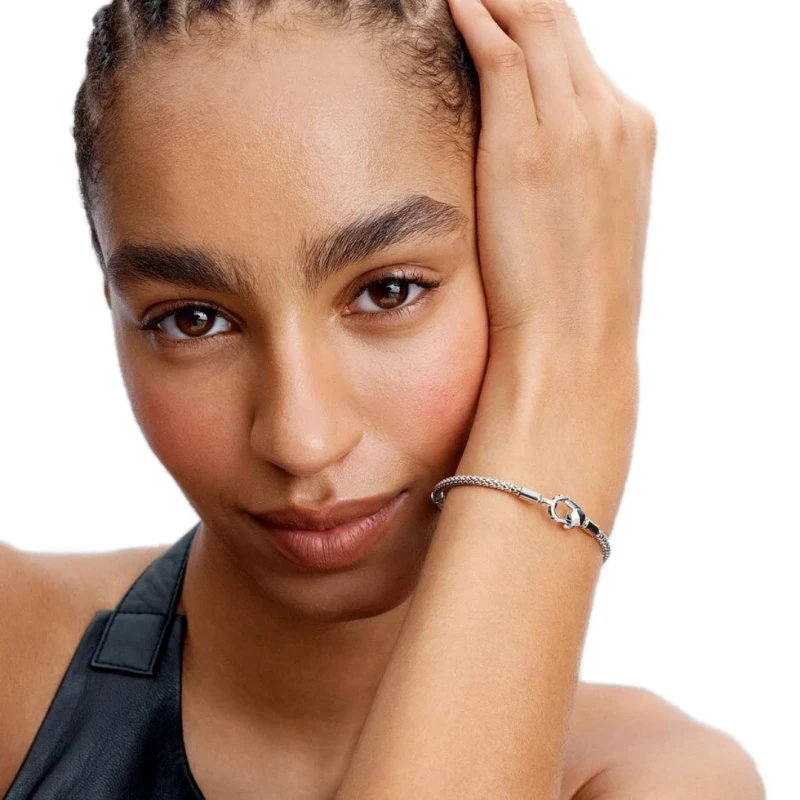 Pulseira Pandora em prata de lei 925, dedicada para um look feminino com um toque visual versátil. Elaborada numa malha snake, esta joia que permite preencher o seu pulso com as suas contas favoritas do catálogo de contas da marca. Com um fecho de mola, o design único e inovador oferece novas formas de utilizar as suas peças de forma elegante e único.