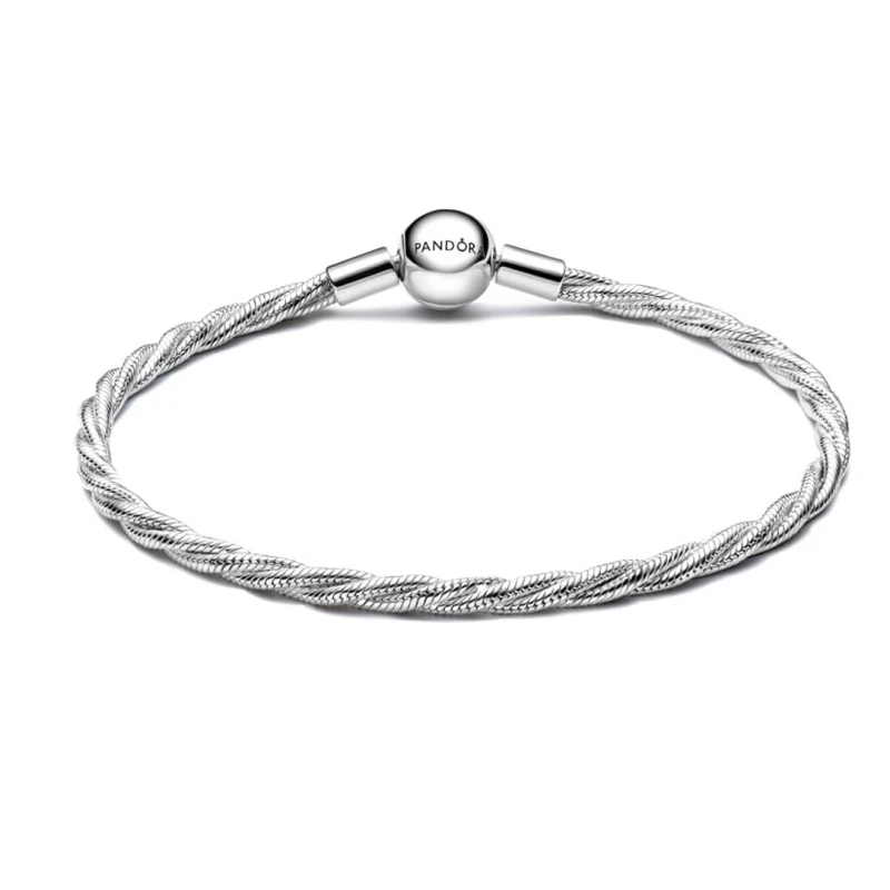 Dê vida ao seu estilo com esta versátil pulseira Pandora com a malha torcida. Esta pulseira trabalhada em prata de lei 925 com um fecho redondo com o logótipo Pandora de ambos os lados. Perfeita para colecionar e estilizar as suas contas preferidas, esta pulseira pode ser usada com até 18 contas ou contas pendente.