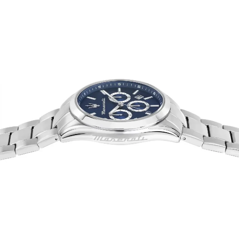 Descubra a beleza deste incrível relógio masculino, um cronógrafo da prestigiada Maserati da coleção Attrazione. Este modelo cheio de classe, elaborado em aço inoxidável com um mostrador azul envolvente, representa um design desportivo e requintado que representa a atenção detalhista técnica aos pormenores. Com referência aos pormenores que a marca dedica em todos os carros, este acessório retrata uma criação singular, carregado de classe e requinte.